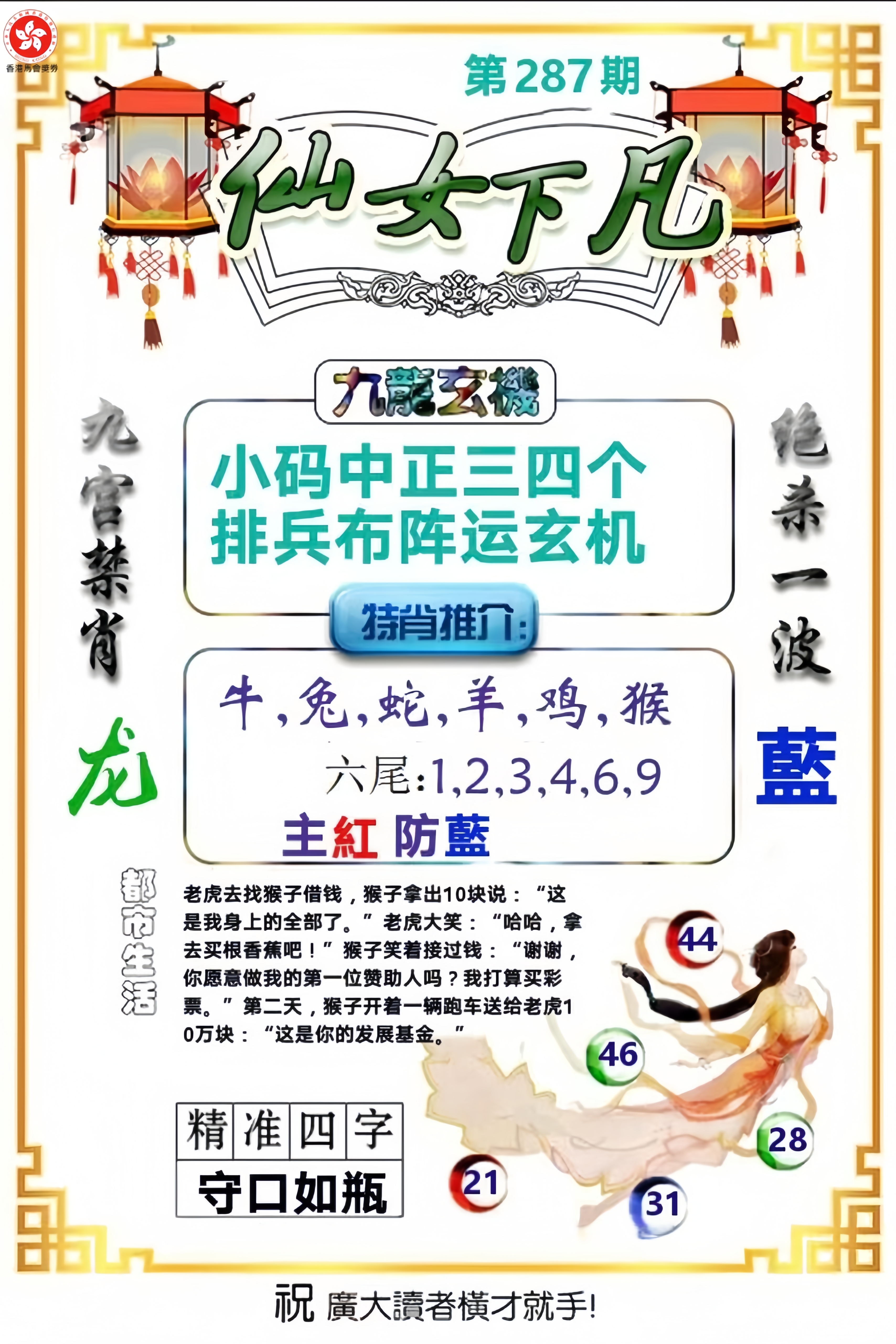 287期;【龙虎鸡蛇羊狗猴牛马】开:????准 |