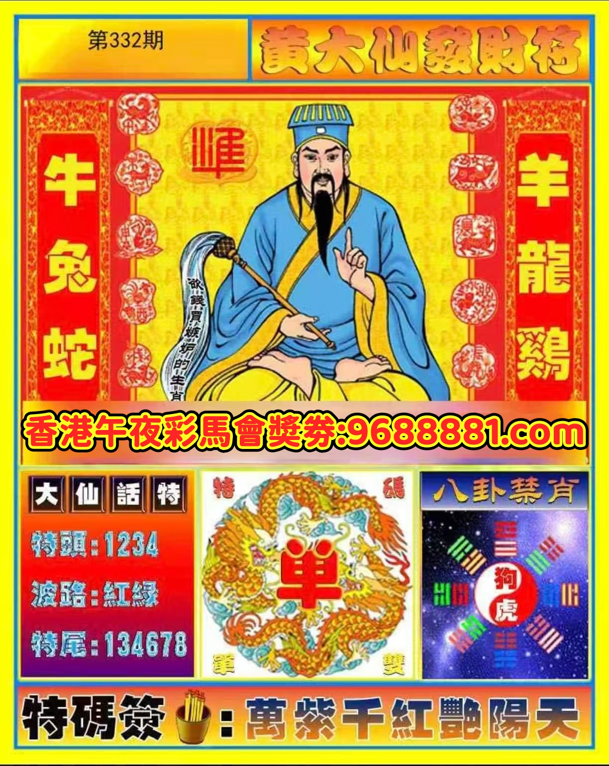 | 332期:⑨肖 | 鸡猴龙马鼠猪蛇狗牛 | 开:狗08 |