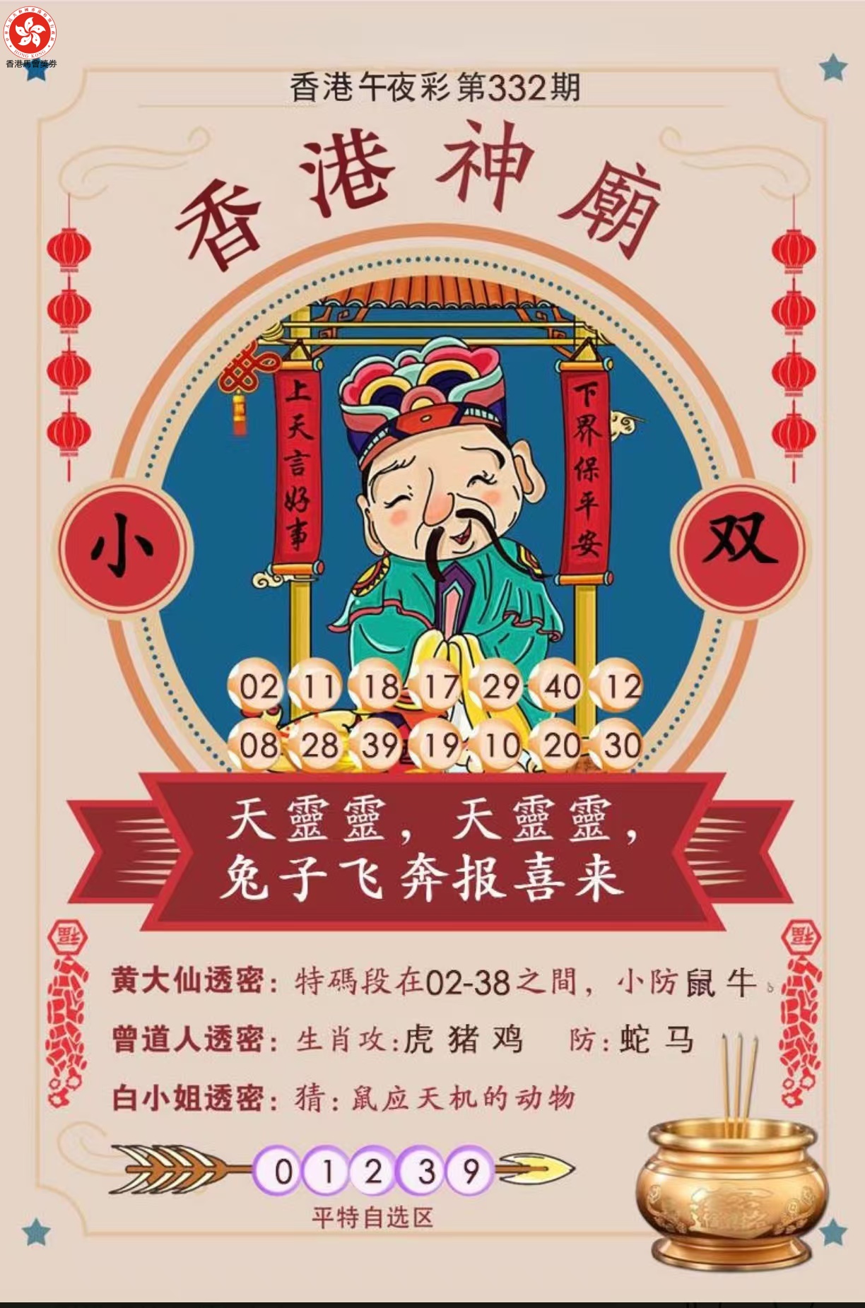 | 330期:②肖 | 猪羊 | 开:虎40 |