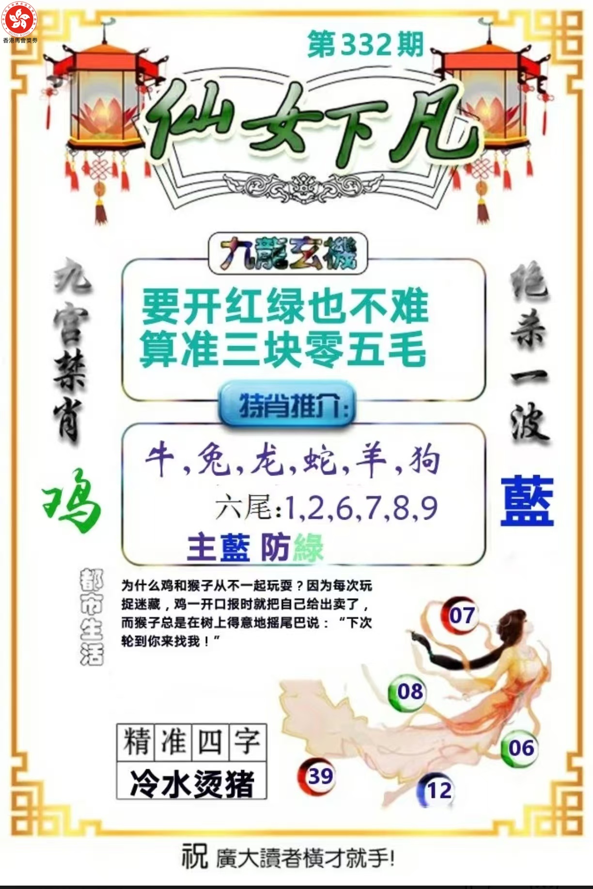 | 332期:⑦肖 | 鸡猴龙马鼠猪蛇 | 开:狗08 |