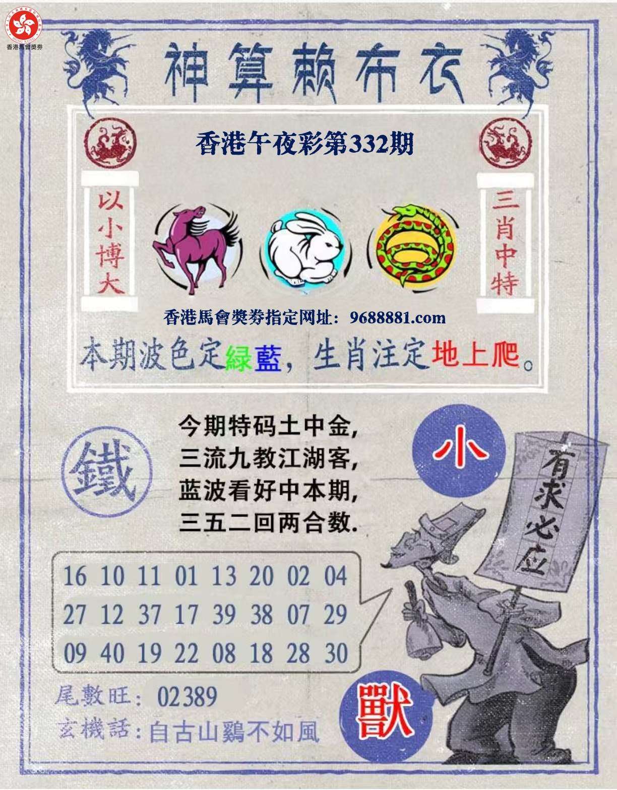 | 330期:绝杀【蓝波】绝杀【2头】开:虎40准 |